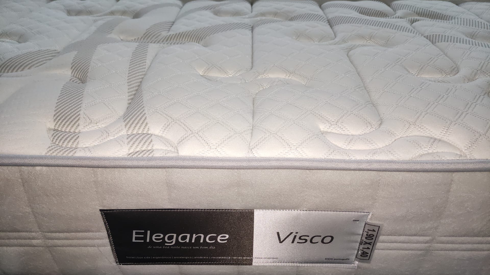 Colchão branco acolchoado com etiqueta Elegance Visco na lateral