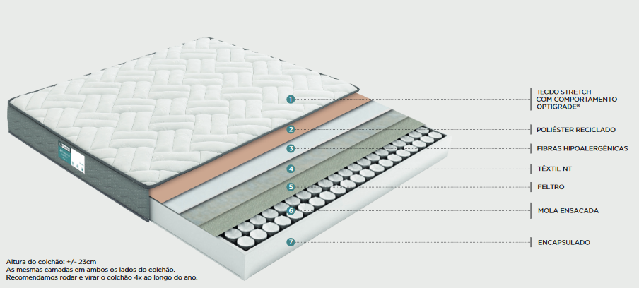 Colchão de conforto estável, graças às molas ensacadas que se adaptam perfeitamente ao corpo.