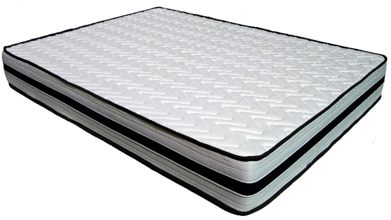 colchão branco com padrão de losangos e bordas pretas